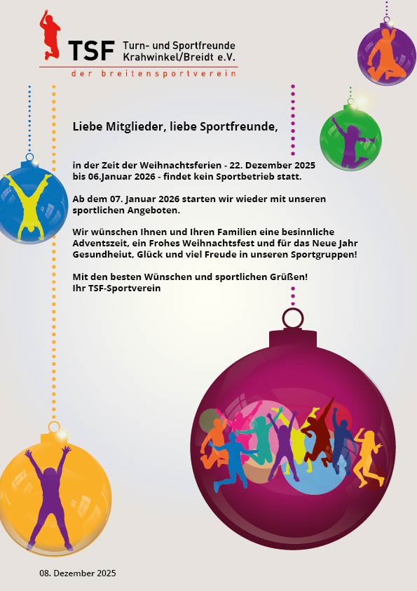 In der Zeit vom 22.12.2025 bis 06.01.2026 findet kein Übungsbetrieb statt.